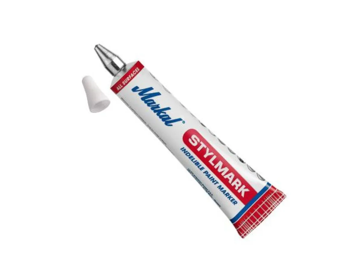 Маркер с металлическим шариковым наконечником Markal Stylmark предназначен для нанесения отметок практически на любые поверхности. Алюминиевый тюбик содержит краску густой консистенции, позволяющую маркировать шероховатые, вертикальные и потолочные поверхности, и