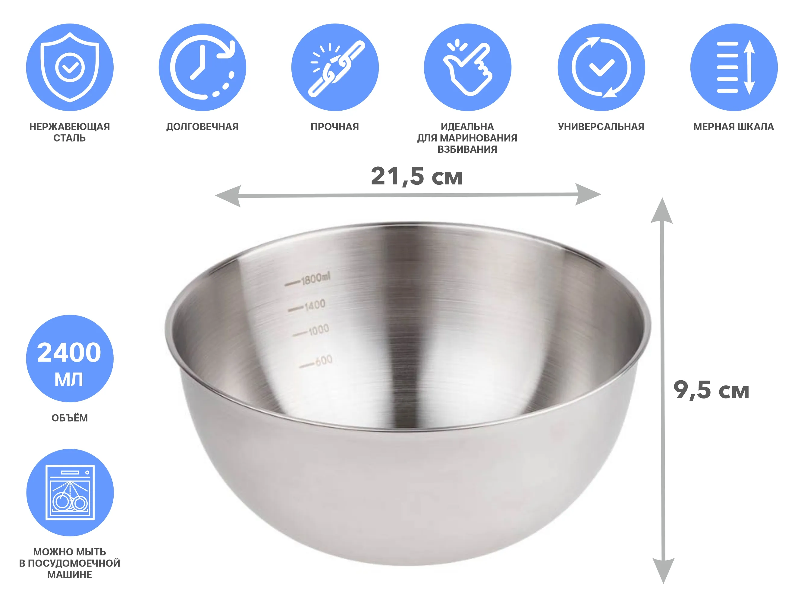 Миска для взбивания из нерж. стали, диаметр 21.5 см, с мерной шкалой, серия CHEF, PERFECTO LINEA