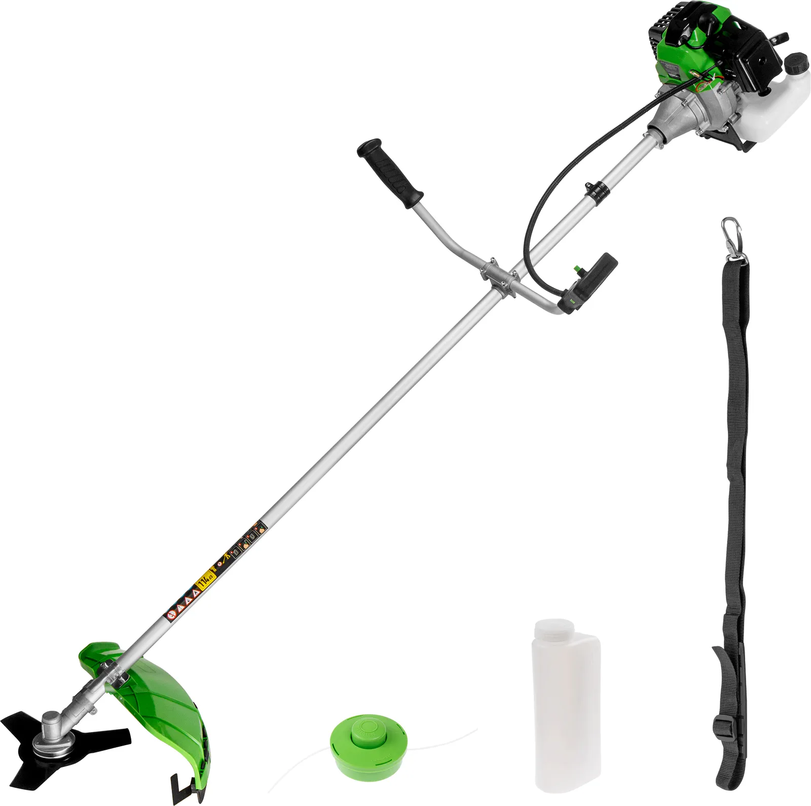 2.1 кВт, лёгкий запуск, косильная головка, нож 3 зуб., ремень однолямочный, вес 7.3 кг
