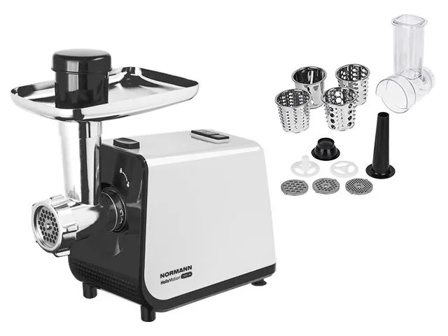 Производительная электрическая мясорубка с функцией реверса, удобной быстросъемной горловиной и теркой для овощей с насадками.