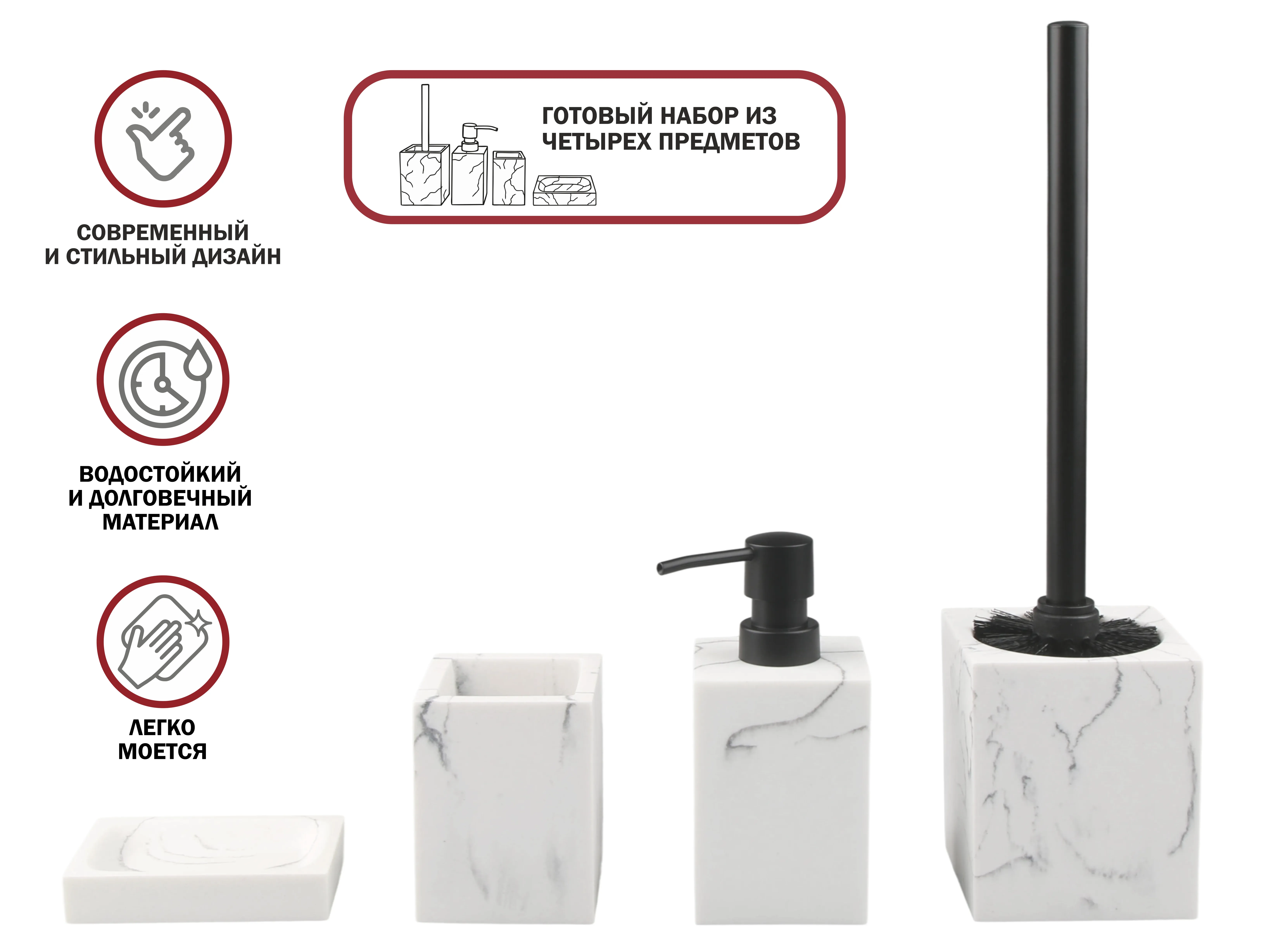 Набор аксессуаров для ванной комнаты, 4 предмета, MARBLE, белый, PERFECTO LINEA