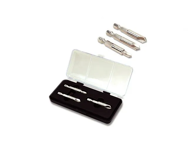 Набор бит для поврежденных шурупов 3 штуки TOPTUL (JGAW0301) удаляет шурупы и винты с поврежденным шлицем Philips, Slotted, Star, Square и т.д. Биты из специальной закаленной стали для надежной фиксации на поврежденных крепежных изделиях. Хвостовик шестигранный 14 подходит для дрели, головок и отверток. Материал: сталь SUJ2.