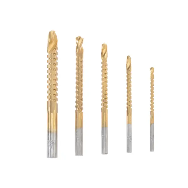 Набор состоит из 5 сверл-фрез, которые позволяют сверлить и фрезеровать листовые материалы без смены оснастки.