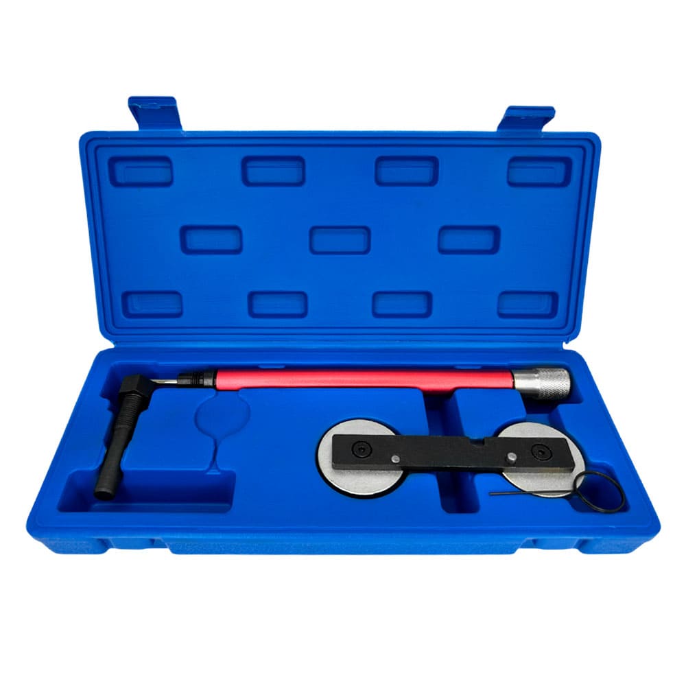 Данный набор предназначен для двигателей с кодами AXU, BAG, BKG, BLF, BLN, BLP, что позволяет использовать его в широком ассортименте моделей VAG. Это универсальное решение для автосервисов, ремонтных мастерских и специализированных центров, где требуется точная настройка ремня ГРМ.