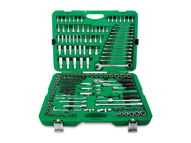 Набор инструмента комбинированный 14 38 12 216 ед. Один из самых полных наборов: содержит три трещотки, стандартные и высокие головы, огромное количество бит и насадок, 3 свечные головки, а также комплект комбинированных ключей от 8 до 22 мм.