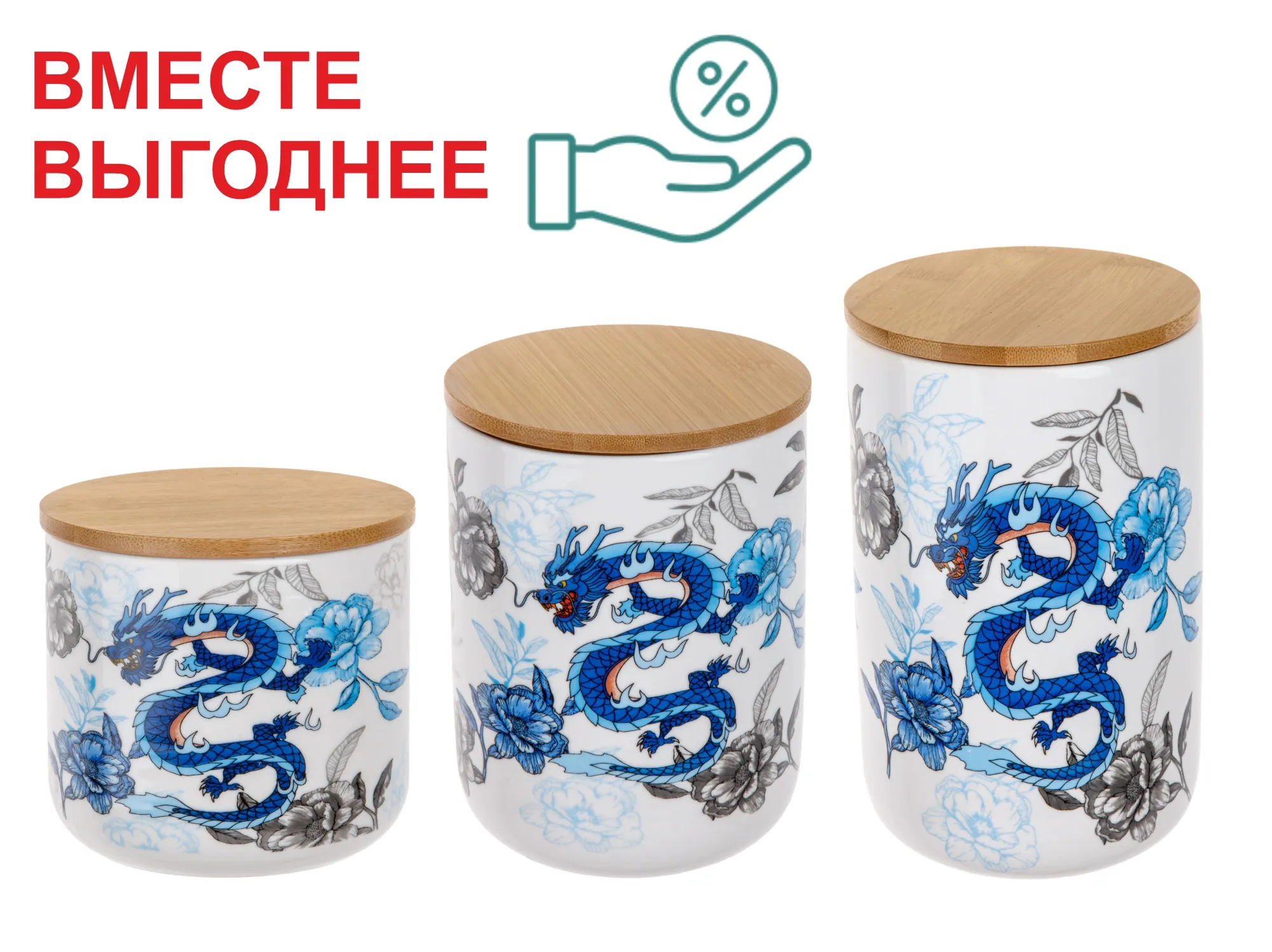 Набор из 3-х банок для сыпучих продуктов керамических, серия BLUE DRAGON, PERFECTO LINEA