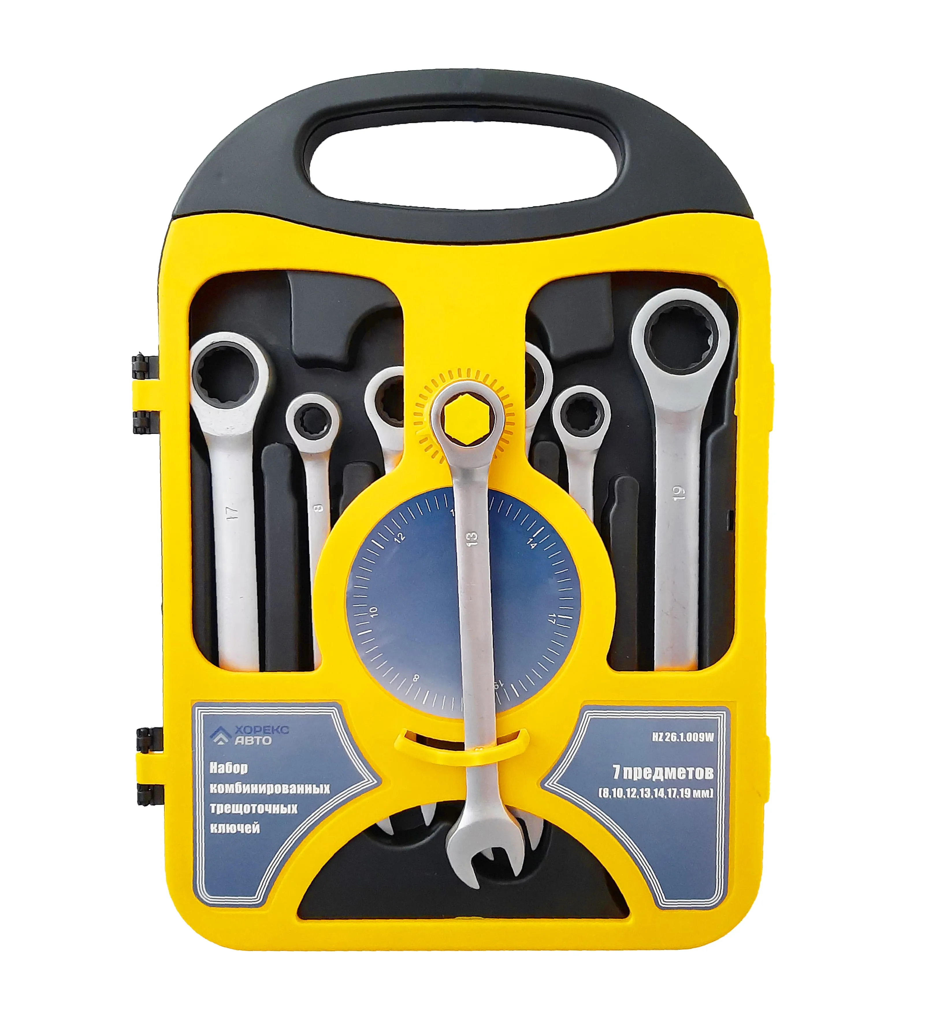 Набор комбинированных трещоточных ключей 8-19 мм (7 предметов) Хорекс Авто HZ 26.1.009W