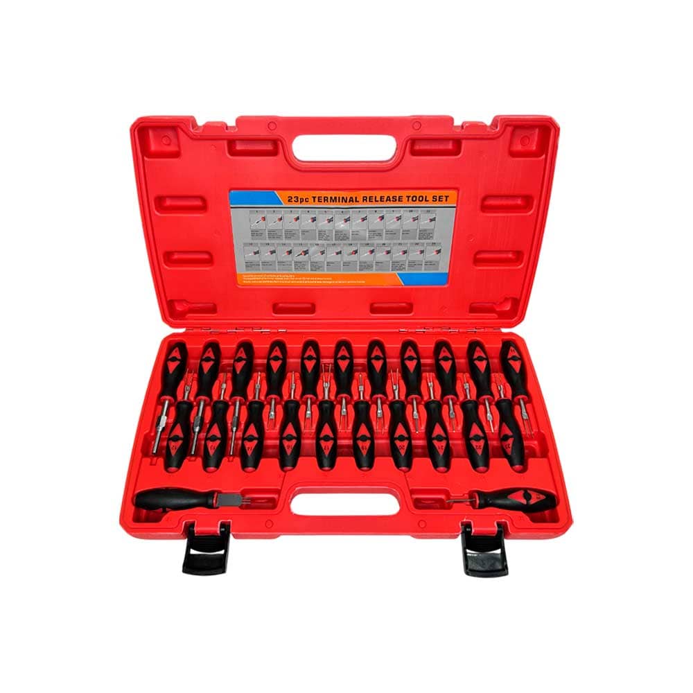 Предназначен для обслуживания клемм электропроводки без повреждения пластиковых разъемов. Благодаря оптимальной комплектации инструмент подойдет для автомобилей большинства марок. Некоторые из наконечников имеют специальное углубление на кольце, предотвращающее соскальзывание с контакта при выдавливании. Для бережного хранения и удобной транспортировки набор поставляется в пластиковом кейсе.