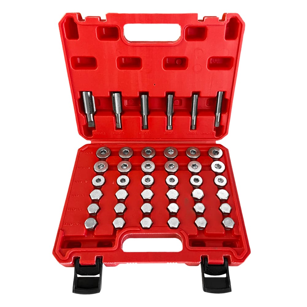 Набор применяется для ремонта разрушенной резьбы в сливных или заливных отверстиях поддонов и картеров ДВС различных транспортных средств и оборудования.
