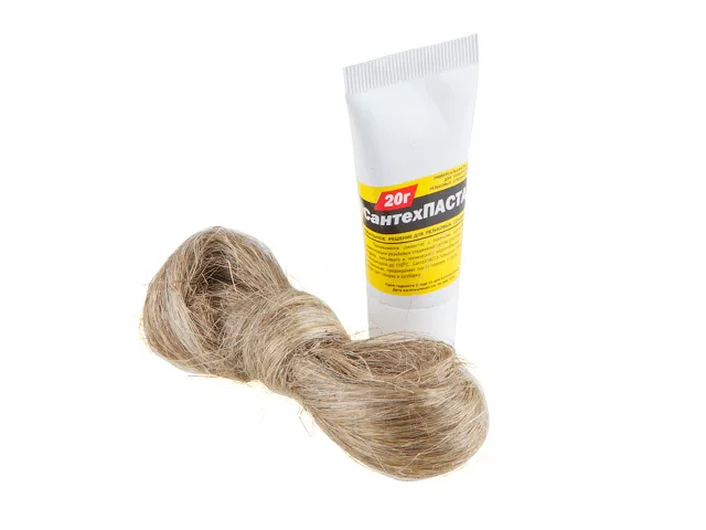 В комплект с пастой входит 14 гр. длинноволокнистого чесанного льна. Для сборки резьбы отсоедините небольшую прядь льна и смажьте её пастой, после чего намотайте полученную прядь по ходу резьбы и соберите соединение.