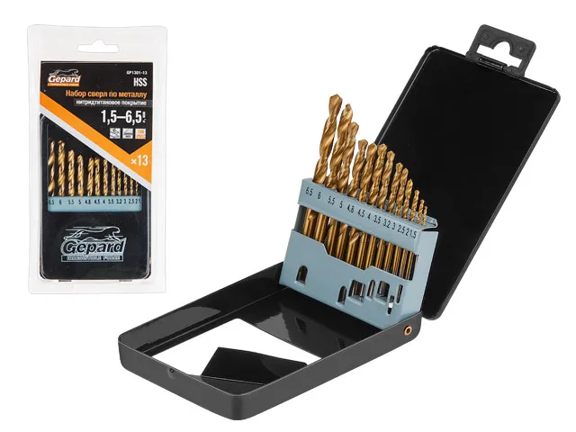 Набор сверл по мет. 13шт 1.5-6.5мм HSS TIN GEPARD