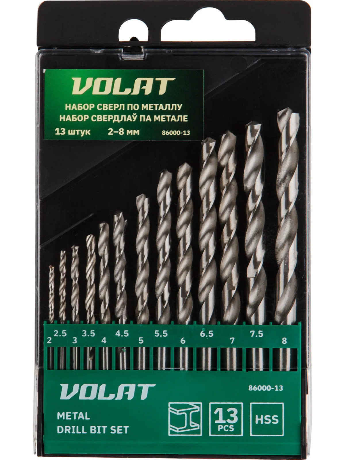 Набор сверл по мет. 13шт 2-8мм HSS ВОЛАТ
