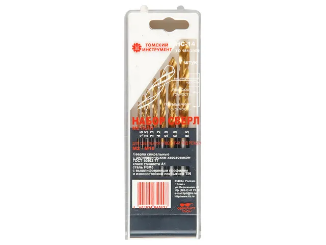 Набор сверл по мет.7 шт НС-14 Р6М5 TIN (ОАО "ТП Томский инструмент")