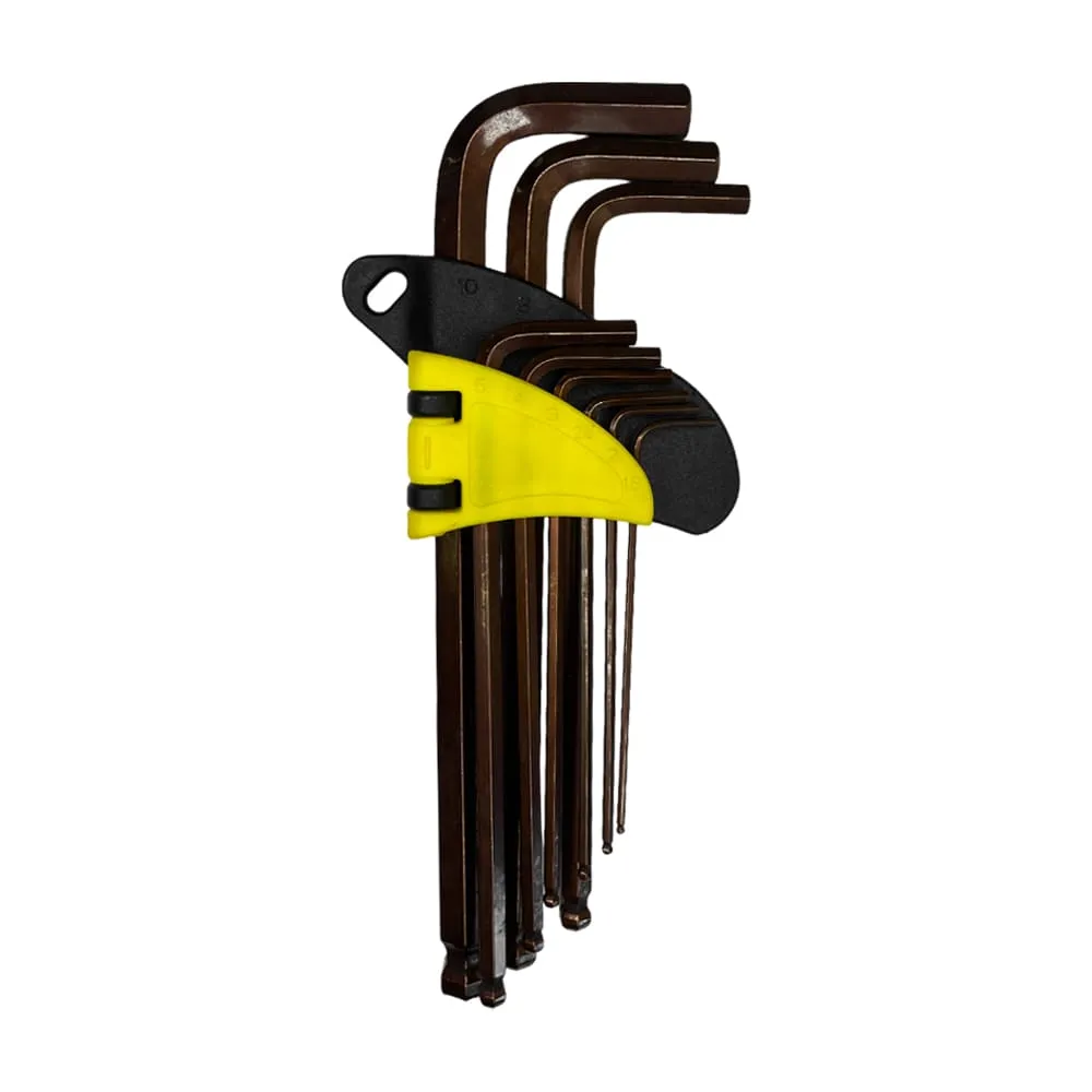 Набор состоит из 9 ключей с размерным рядом: 1.5; 2; 2.5; 3; 4; 5; 6; 8; 10.