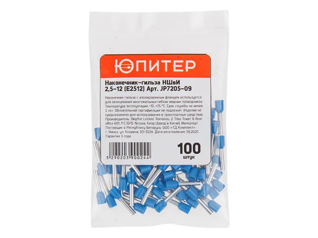 Наконечник-гильза НШвИ 2,5-12 (E2512) (100 шт) Юпитер