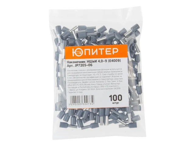 Наконечник-гильза НШвИ 4,0-9 (E4009) (100 шт) Юпитер