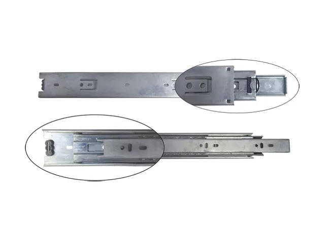 Для установки необходимо разобрать направляющую, отстегнув половину закрепляемую на выдвижном элементе (при помощи специальной защелки), после установки в изделии обе половинки направляющей необходимо совместить друг с другом и задвинуть ящик пока не раздастся щелчок. Выдвижение происходит за счет нескольких рядов шариков, удерживаемых клетках, перемежающихся в специальных пазах.