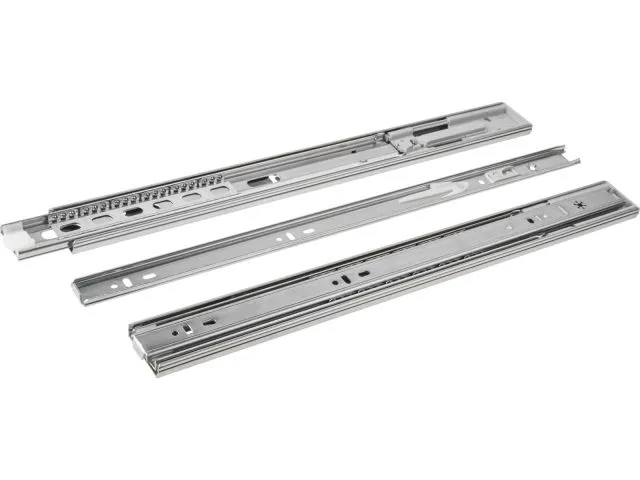 Для установки необходимо разобрать направляющую, отстегнув половину закрепляемую на выдвижном элементе (при помощи специальной защелки), после установки в изделии обе половинки направляющей необходимо совместить друг с другом и задвинуть ящик пока не раздастся щелчок. Выдвижение происходит за счет нескольких рядов шариков, удерживаемых клетках, перемежающихся в специальных пазах.