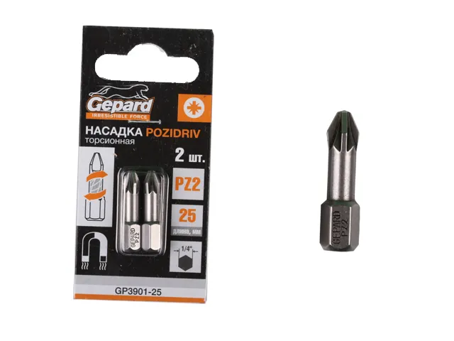 Насадка крестообразная PZ2 25мм 2шт торсионная GEPARD (GP3901-25)