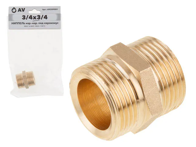 Ниппель под евроконус 3/4" нар.-нар., AV Engineering (инд. упак.)