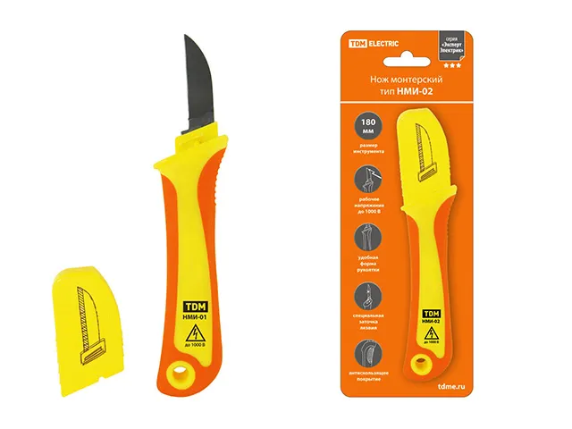 Нож монтерский с прямым лезвием, диэлектрический, НМИ-02 "ЭкспертЭлектрик" TDM