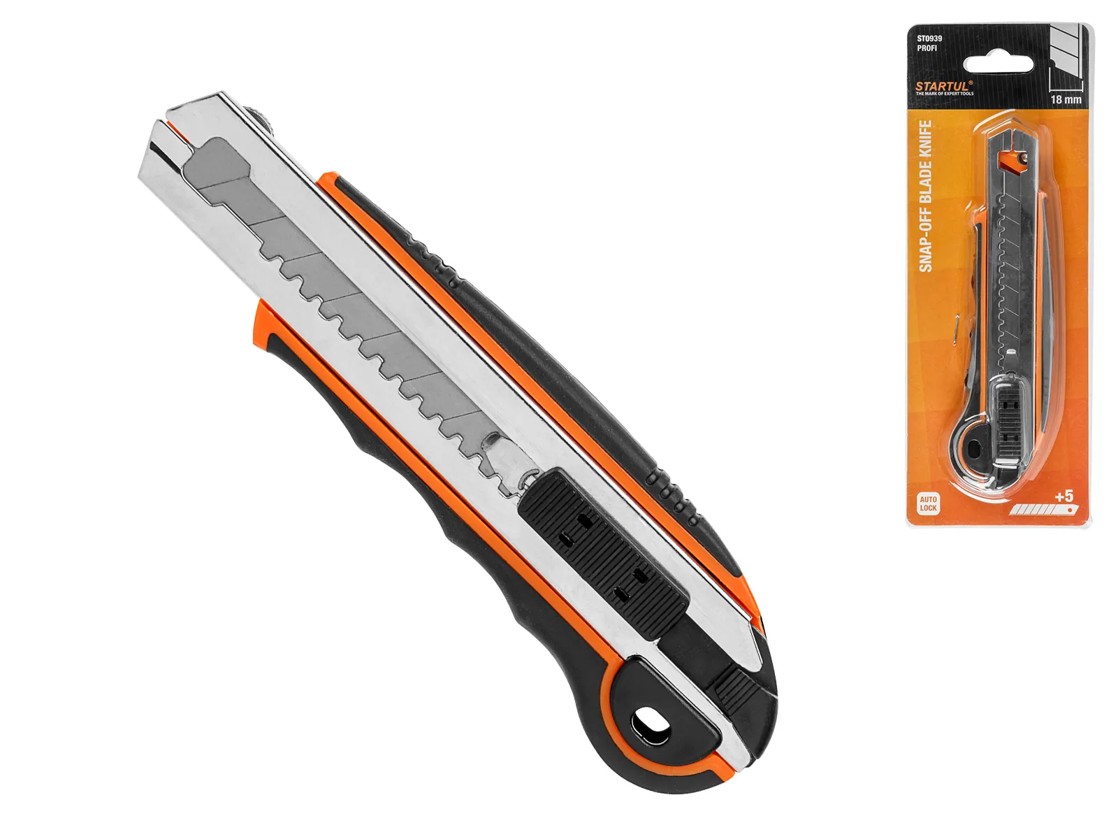 Нож пистолетный с выдвижным лезвием 18мм + 5 лезвий STARTUL PROFI (ST0939)