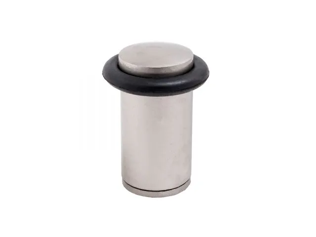 Ограничитель/упор дверной напольный. Материал - сплав ЦАМ, гальваническое покрытие. Цилиндрическая форма. Высота упора - 60мм, диаметр - 29мм. Шуруп в комплекте.