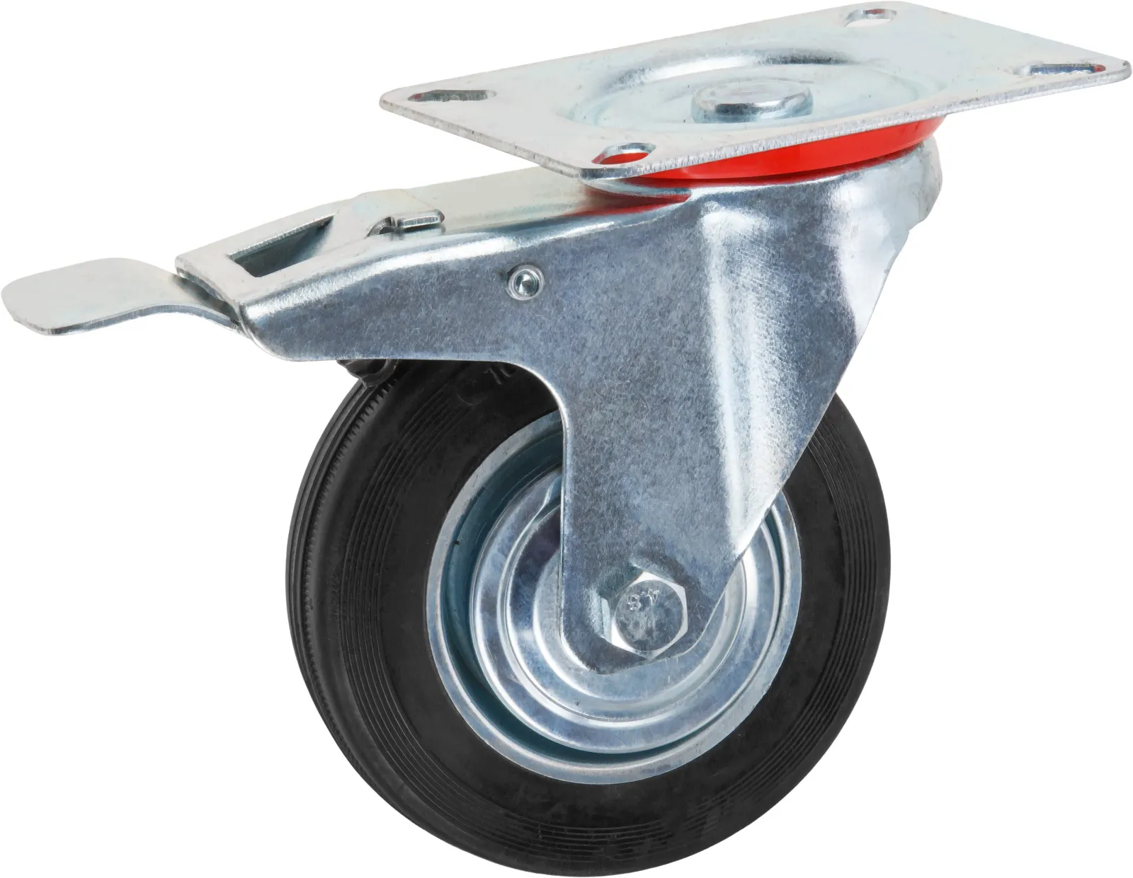 Опора колёсная d-100мм на площадке с фиксатором, резиновая STARFIX
