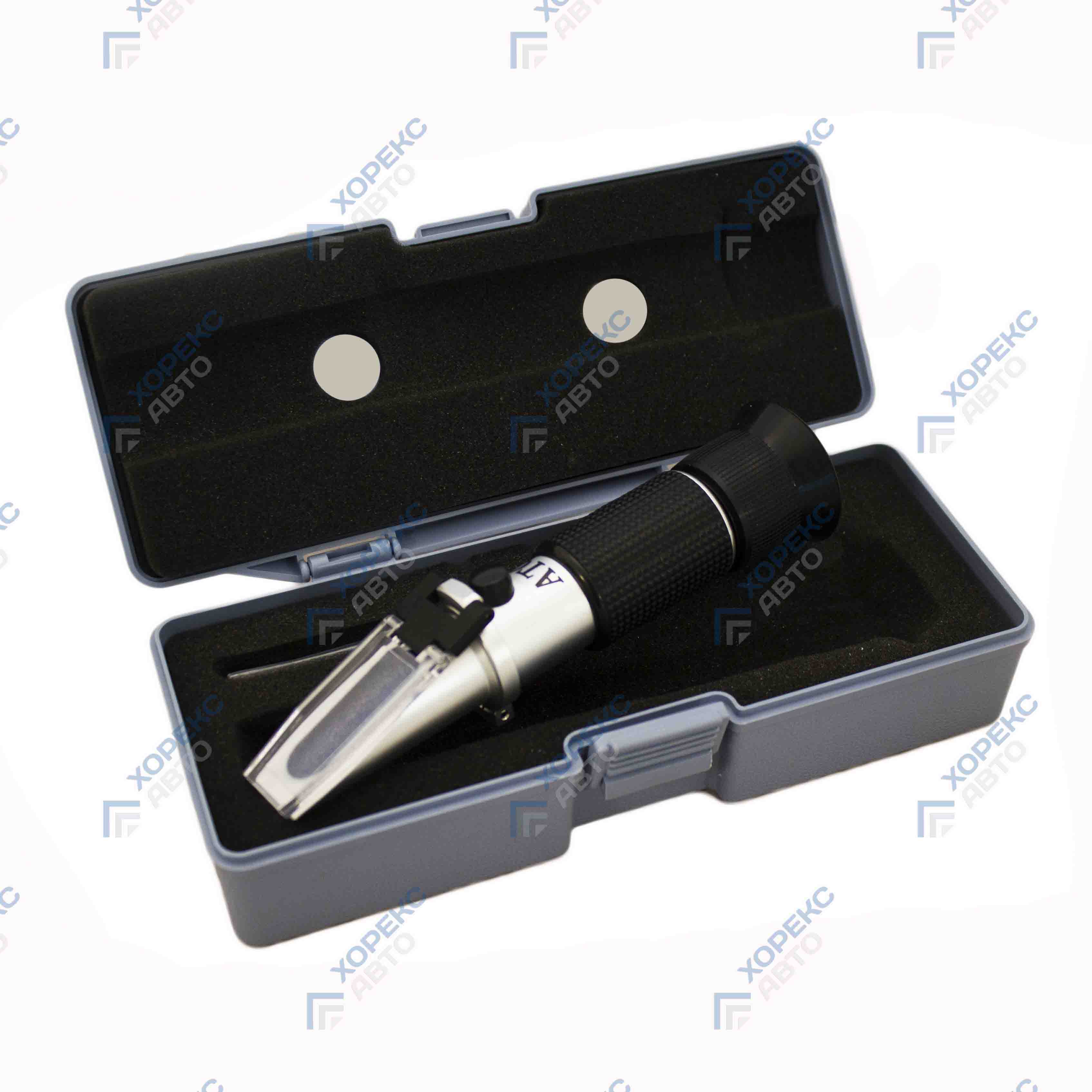 Профессиональный рефрактометр для измерения жидкостей легковых автомобилей и автобусов. Предназначен для определения точки замерзания жидкости омывателя, охлаждающая жидкость и этиленгликоля. Она также обеспечивает диапазон плотности электролита.