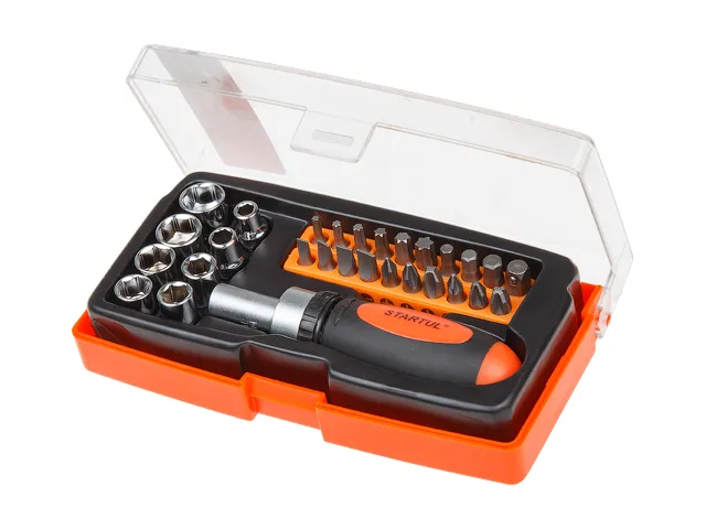 Отвертка реверс. с набором бит/головок 29пр. STARTUL PROFI (ST3049-29)