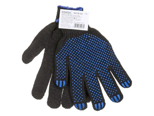 Перчатки х/б с ПВХ "Точка", 7,5класс, черные STARTUL