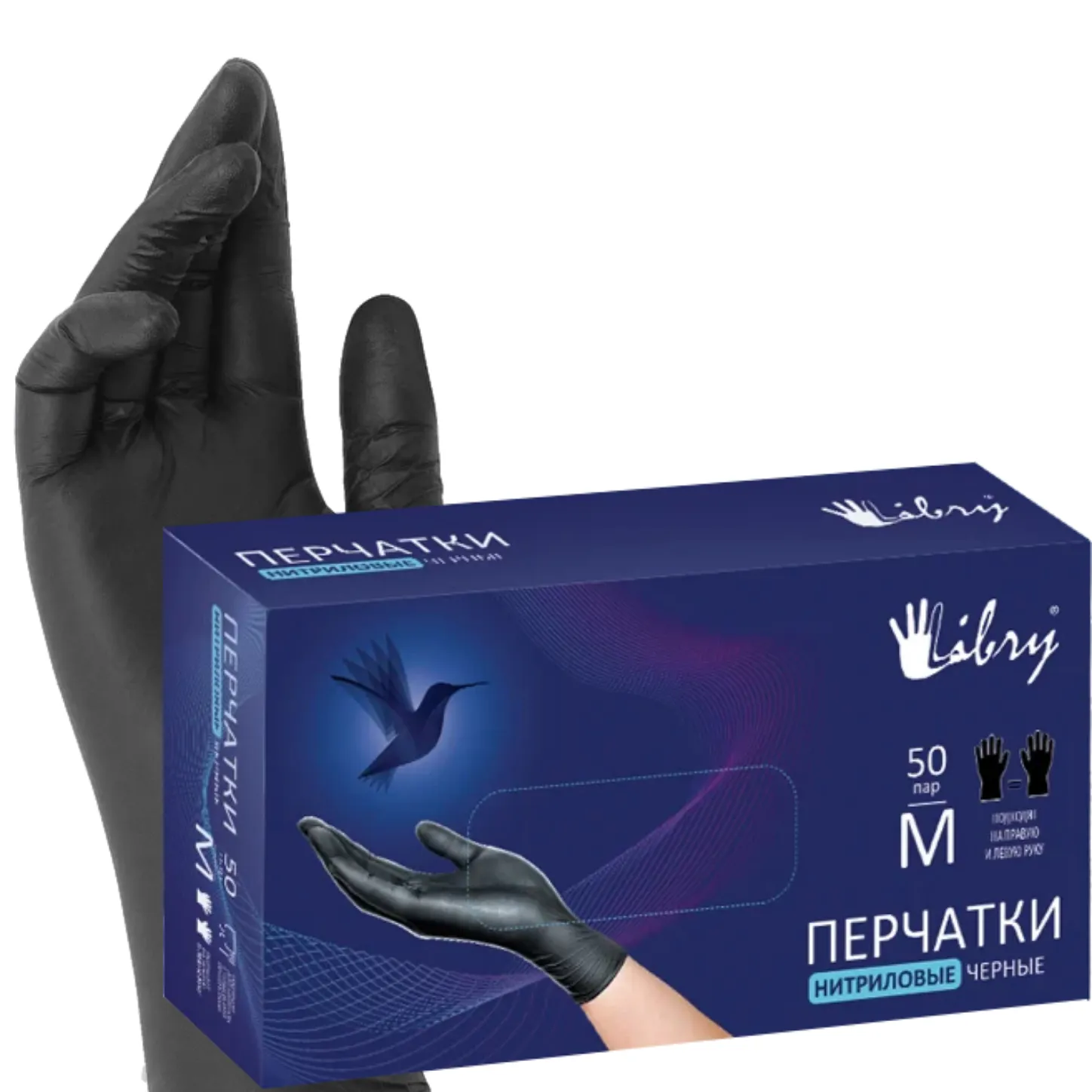 Перчатки нитриловые, р-р М, уп. 50 пар. черные LIBRY