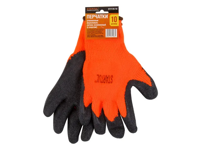 Перчатки утепленные акриловые с ворсом, латексное рельефное покрытие, 10 р-р STARTUL