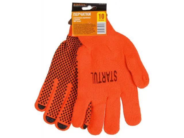 Перчатки утепленные акриловые с ворсом, ПВХ "Точка" 10 р-р, STARTUL