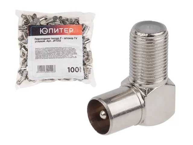 Переходник гнездо F - штекер TV угловой (100 шт.) Юпитер
