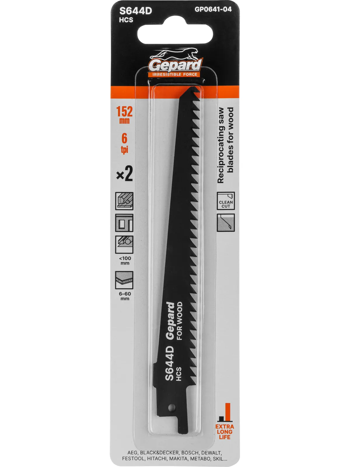 Пилка сабельная по дереву S644D (2 шт.) GEPARD