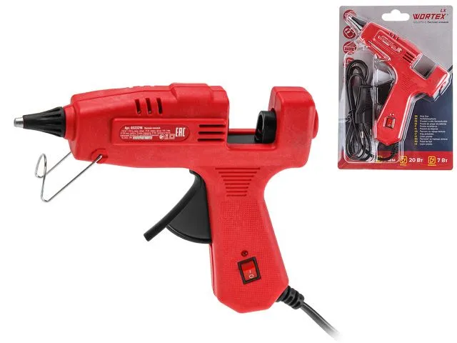 Пистолет клеевой WORTEX LX GG 0710-3 в блистере 20 Вт, 7,2 мм, 8 г/мин