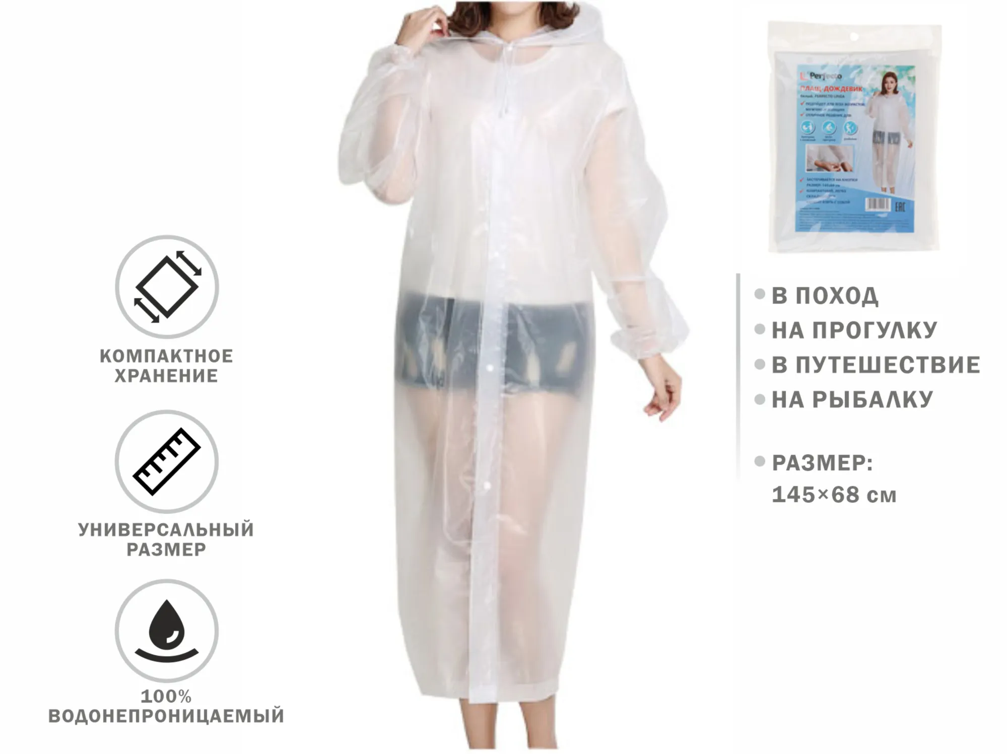 Плащ-дождевик белый, PERFECTO LINEA