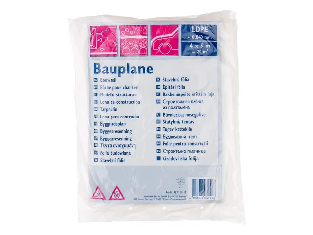 Пленка изготовлена из полиэтилена высокого давления, толщина 40 мкм, 20м2, LDPE. Применяется при ремонтных и отделочных работах для защиты поверхностей от пыли, грязи, краски и т. п.