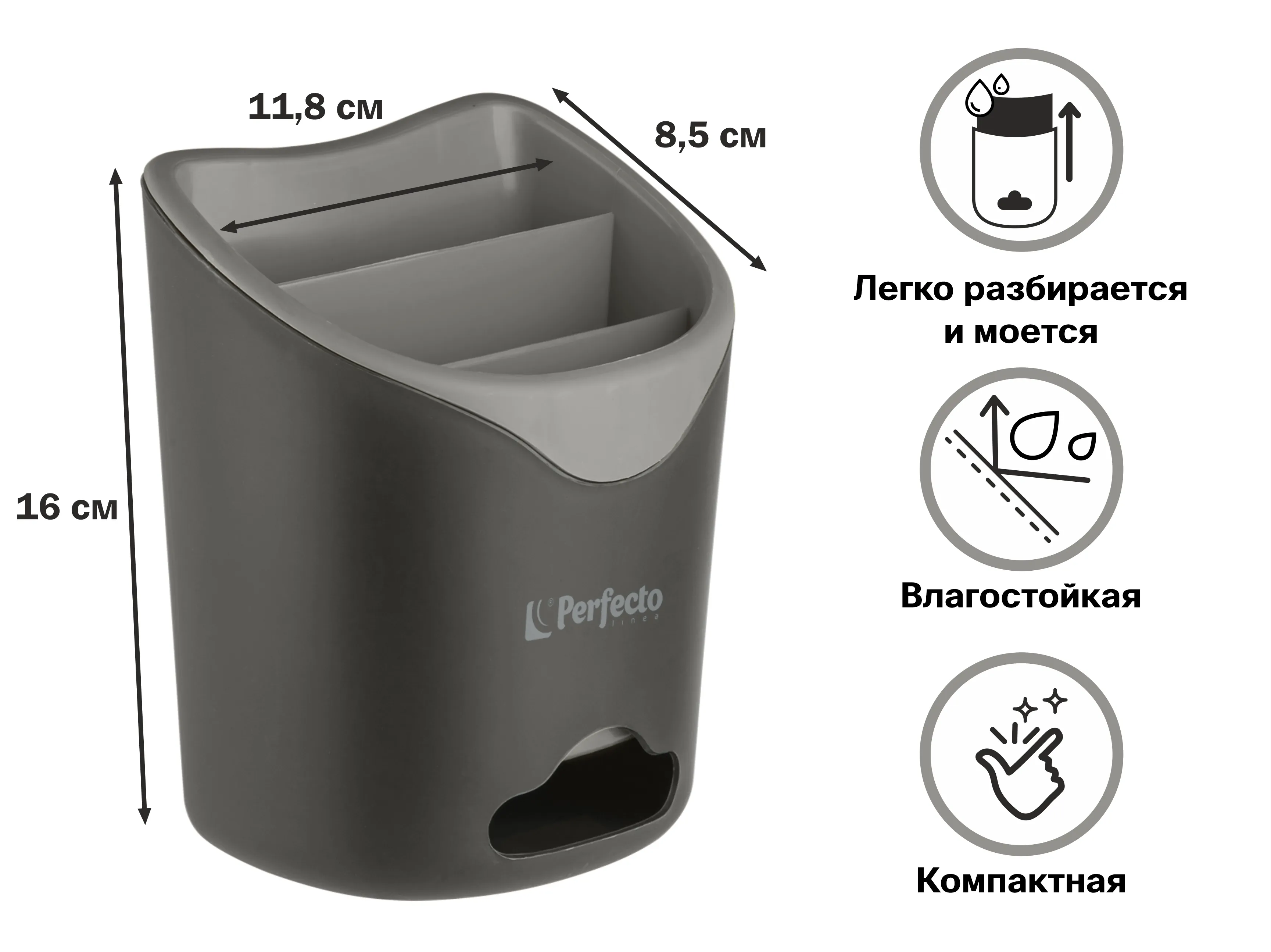 Подставка для столовых приборов, серая, PERFECTO LINEA