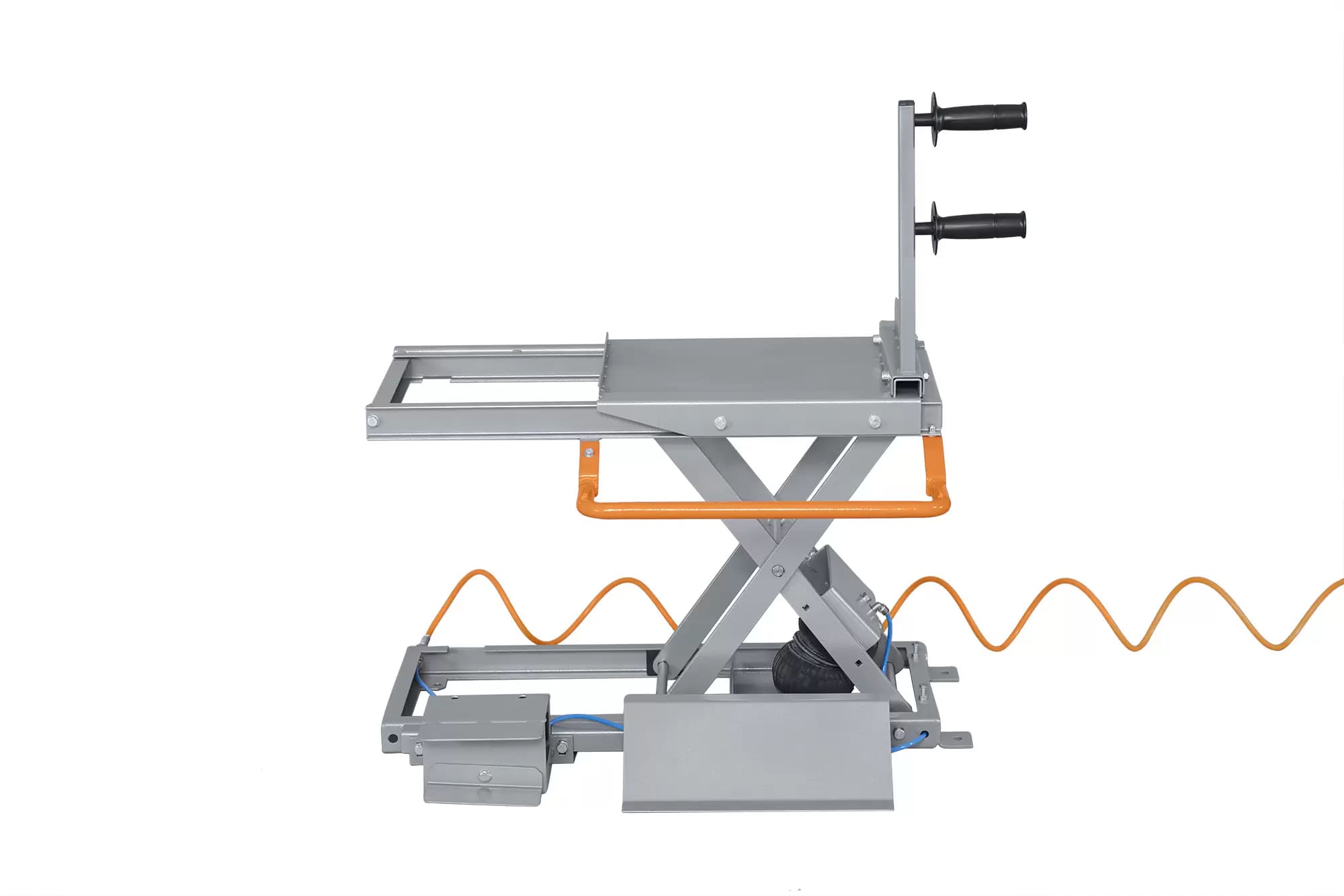 В отличие от ручного подъёма колёс, пневматический подъёмник значительно снижает риск травм, обеспечивая безопасное и комфортное выполнение работы.