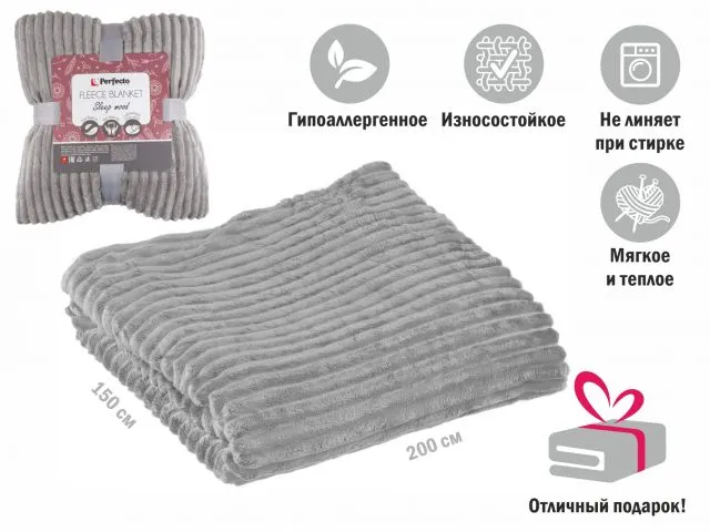 Покрывало флисовое 150x200 см., серое, серия Sleep mood, PERFECTO LINEA