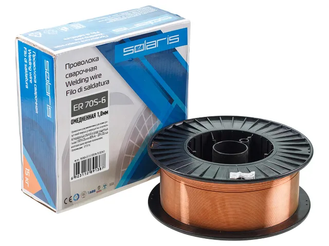 Проволока сварочная омедненная ER 70S-6 ф1,0мм (катушка D300 15 кг) SOLARIS
