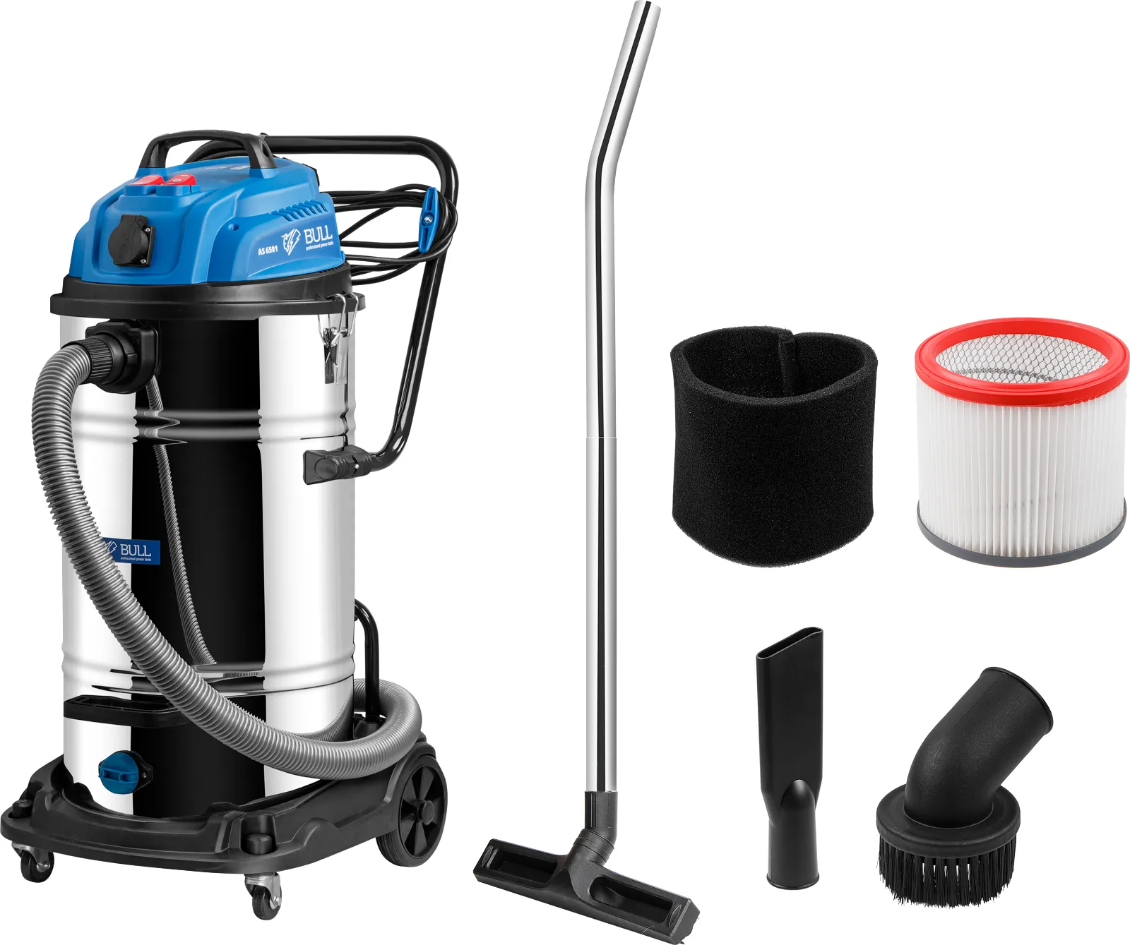 Пылесос BULL AS 6501 + аксессуары 2x1200 Вт, 70 л, 6м кабель, 5м шланг, HEPA