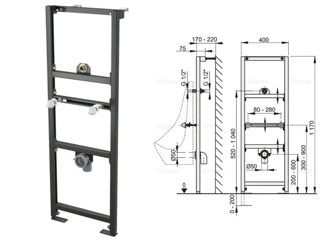Рама для писсуара (высота монтажа 1,2 м), Alcaplast