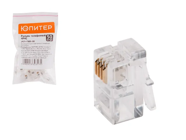 Разъем (джек) телефонный 4P4C (50 шт.) ЮПИТЕР