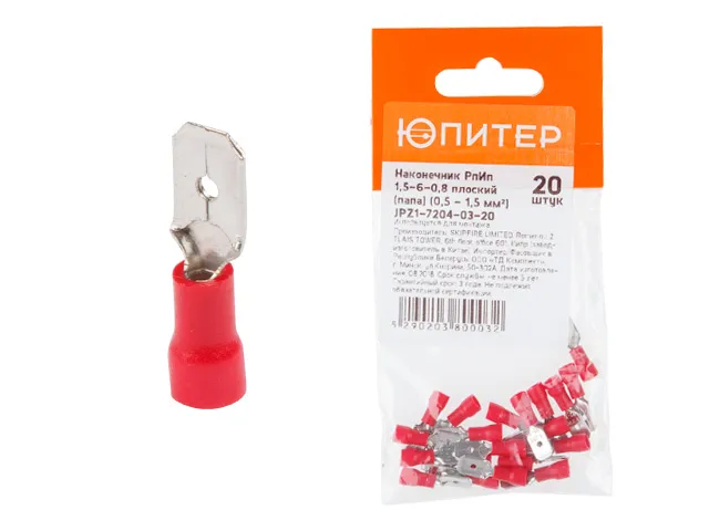 JPZ1-7204-01-20 Наконечник РпИм 1,5-7-0,8 плоский (мама) (0,5 - 1,5 мм2) (20 шт) Юпитер,