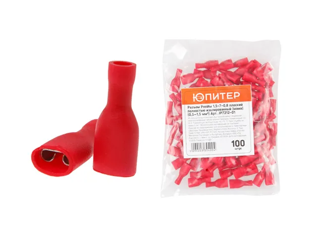 JP7204-03 Наконечник РпИп 1,5-6-0,8 плоский (папа) (0,5 - 1,5 мм2) (100 шт) Юпитер,