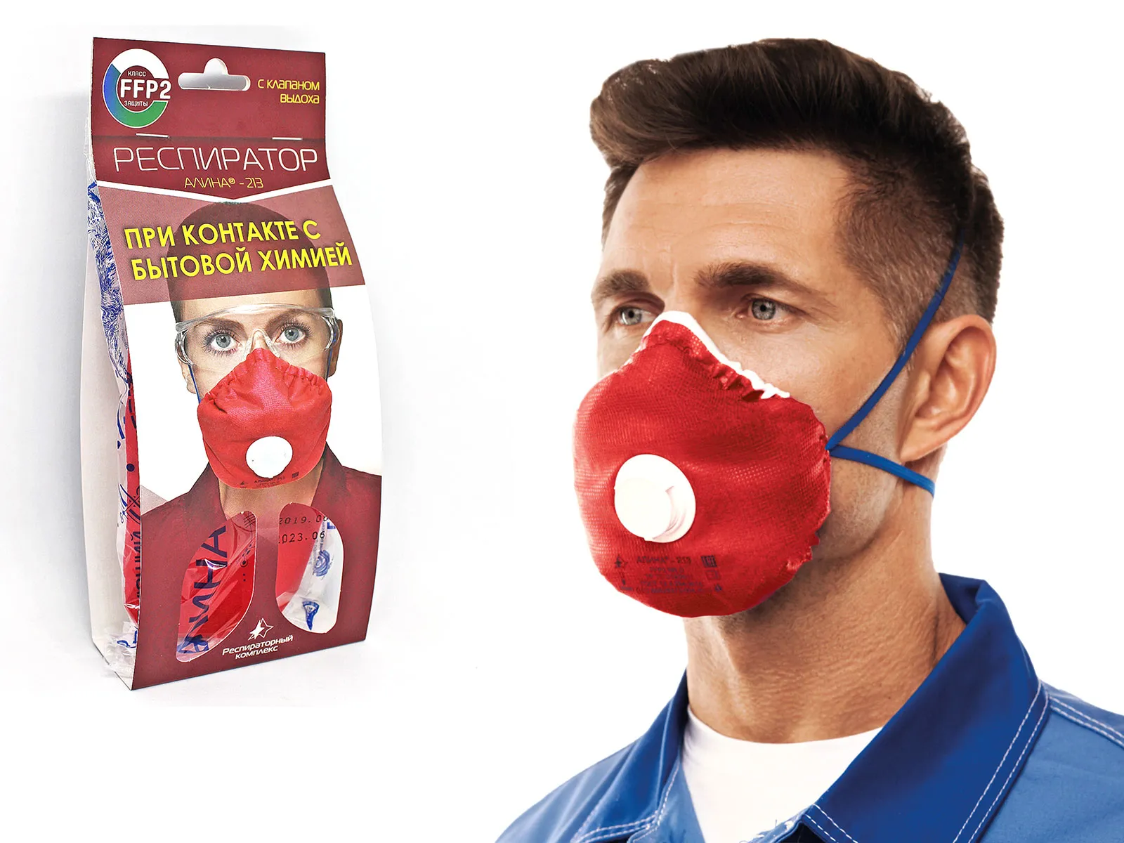 АЛИНА-213 – фильтрующая полумаска второго класса (FFP2) с клапаном выдоха. Защищает от всех видов аэрозолей, при их концентрации до 12 ПДК, и от основных газов (аммиак, амины, гидразин и т.п.).