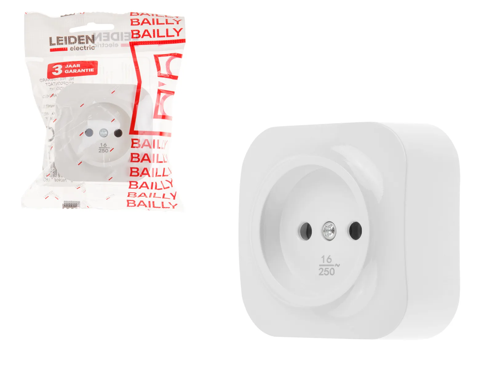 Розетка 1-ая (открытая, б/з) белая, Bailly, LEIDEN ELECTRIC